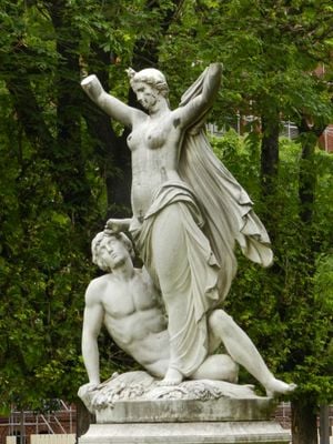 L'Aurore, Sculpture en marbre au Jardin des Grands Explorateurs, France.