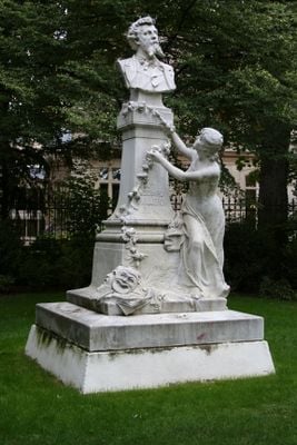 La sculpture se dresse parmi d'autres monuments artistiques du parc Monceau, reflétant la tradition française de commémorer les figures littéraires.