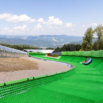 Une caractéristique particulière est la piste illuminée qui permet le ski nocturne, ajoutant une dimension supplémentaire à l'expérience hivernale. Par temps clair, la vue depuis le point le plus haut s'étend jusqu'aux Alpes, offrant une perspective géographique plus large depuis ce lieu.