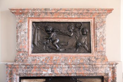 Bas-relief dans le château de Caveirac, ébats de chérubins, ornement en bas-relief d'une cheminée en marbre du Languedoc