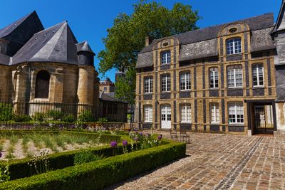 Les décorations extérieures du bâtiment associent silex, éléments de brique et colombages, représentant l'architecture normande traditionnelle.