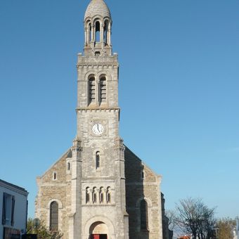 L'église de style romano-byzantin présente une façade en pierre avec un clocher ajouté en 1897, conçue par l'architecte nantais Menard.
