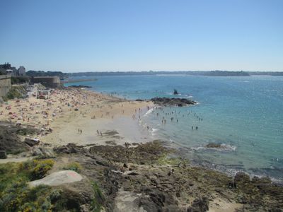 La plage offre des vues directes sur l'île du Grand Bé, lieu de repos de l'écrivain Chateaubriand, et le Petit Bé avec son fort du XVIIe siècle.