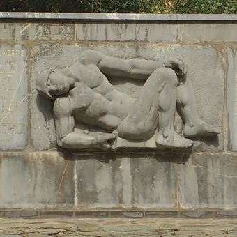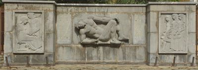 Le monument en pierre mesure 190 centimètres de hauteur et 560 centimètres de largeur, présentant des sculptures en haut-relief et bas-relief d'Aristide Maillol.