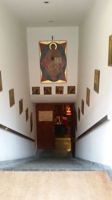 L'église occupe l'ancien atelier d'artiste ayant appartenu à François Gérard avant sa transformation en chapelle byzantine en 1934.