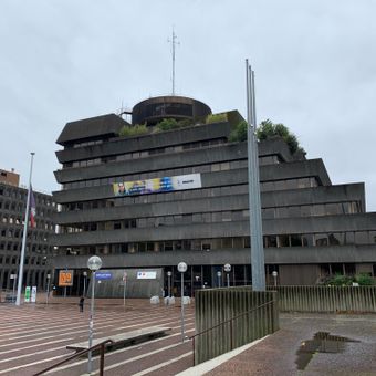 Le bâtiment intègre des matériaux modernes comme le béton de basalte et des bandeaux de fenêtres continues, représentant l'architecture de la fin des années 1960.