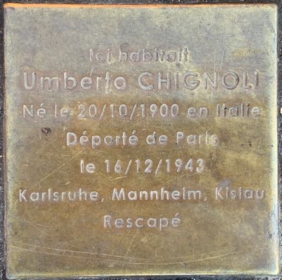 Stolperstein à la mémoire d'Umberto Chignoli, stolperstein à Fontenay-sous-Bois, France