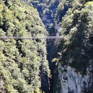 Construite en 1920 par des ouvriers italiens de l'entreprise Lombardi Morello, cette passerelle suspendue était initialement destinée à faciliter l'exploitation forestière en permettant aux bûcherons de traverser les gorges pour accéder aux zones d'abattage des deux côtés du canyon.