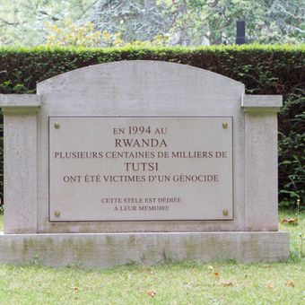 Stèle à la mémoire des victimes du génocide des Tutsi au Rwanda, Mémorial de guerre au cimetière du Père Lachaise, France.