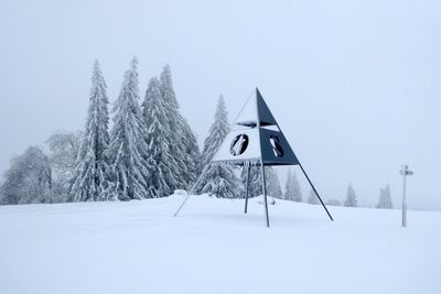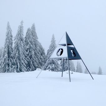 Une sculpture pyramidale installée en 2019 au sommet indique les points cardinaux et sert de repère géodésique pour les randonneurs.