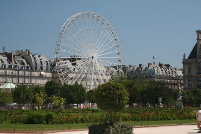 La Grande roue des Tuileries est une roue qui s'élève à environ 60 mètres de hauteur dans le jardin central de Paris. Ses cabines offrent des vues sur le fleuve, les musées et les bâtiments historiques qui entourent le parc.