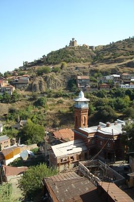 La Mosquee de Tbilisi est un lieu de culte au pied de la Forteresse de Narinkala dans la Vieille Ville, presentant un minaret octogonal distinctif a son entree. La structure mele des elements architecturaux de la Renaissance gotique et islamique sur sa facade en brique.