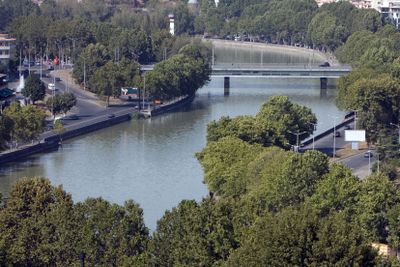 Le pont Baratashvili est une passerelle piétonne qui traverse le fleuve Kura a Tbilissi, construite avec un design en porte-a-faux. La structure relie le centre-ville a des quartiers historiques et comporte des elements decoratifs en bronze.