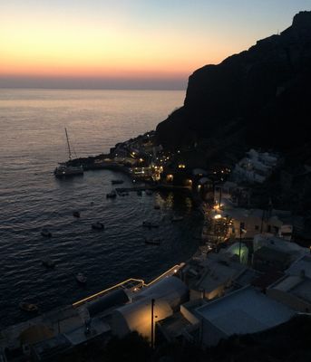 Accédez à la baie en descendant environ 300 marches en pierre depuis le village d'Oia, ou arrangez un transport depuis la ville de Fira. Portez des chaussures robustes car les marches sont raides et étroites, et apportez de l'eau car l'ombre est rare.