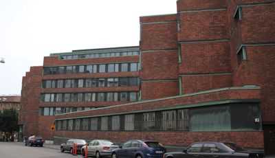 Le siège de Kela est un immeuble administratif à Taka-Töölö composé de plusieurs structures disposées autour d'une cour centrale. La façade combine la brique rouge, le cuivre et le granit noir, tandis que l'intérieur abrite les bureaux des services de retraite et de santé.