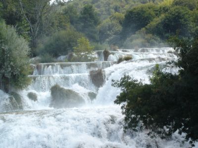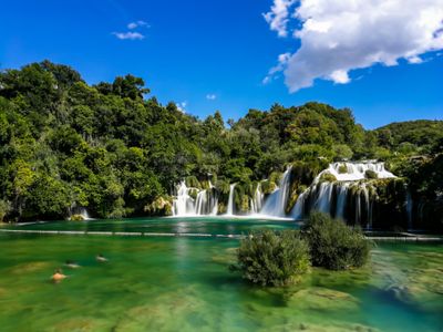 La rivière Krka traverse des formations calcaires, créant sept chutes d'eau sur 109 kilomètres carrés de nature préservée.