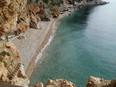 L'accès implique de descendre un long escalier depuis la zone de stationnement près du village de Popovići jusqu'au rivage. Il n'y a pas de magasins, de cafés ou d'installations sur place, il est donc préférable d'apporter ce dont vous avez besoin à l'avance.