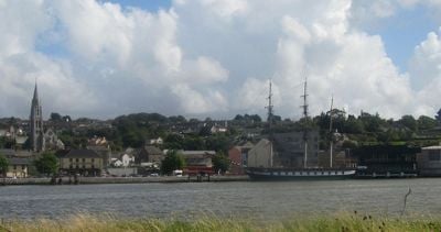New Ross s'étend le long de la rivière Barrow, avec des bâtiments en pierre, des rues étroites et une zone portuaire.