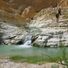 Le ruisseau traverse un canyon aux falaises abruptes, créant plusieurs bassins naturels et cascades dans le paysage désertique.