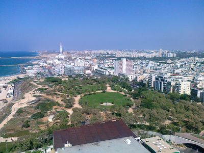 Situé entre la Place Atarim et le Boulevard Nordau, le parc repose sur une crête de kurkar de vingt mètres de hauteur.