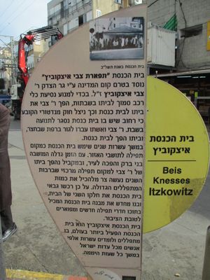 La Synagogue Itzkovitch dispose de plusieurs salles de prière dans un grand bâtiment situé à l'intersection des rues Rabbi Akiva et HaRav Shach.
