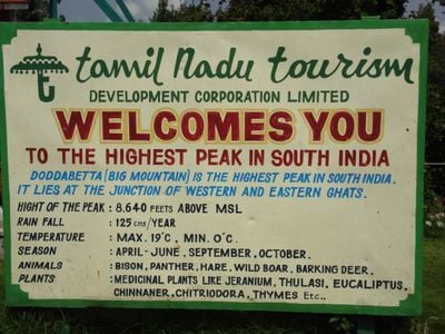 Doddabetta atteint une altitude de 2637 mètres, situé à l'intersection des chaînes montagneuses des Ghats occidentaux et orientaux.