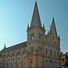 La Basilique Sainte-Croix présente une architecture baroque avec deux flèches, des vitraux et des peintures murales détaillées.