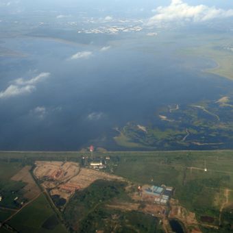 Chembarambakkam Lake est un réservoir d'eau douce à Chennai, composé d'un large bassin peu profond entouré de collines basses et bordé de digues en terre. La surface de l'eau varie au fil de l'année selon les pluies de mousson, et certaines parties de la rive sont bordées de roseaux et d'arbustes.