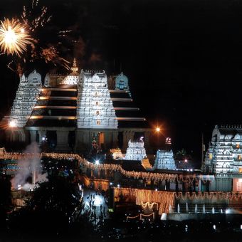 ISKCON Temple, Bengaluru est un temple hindou dans le quartier de Rajajinagar à Bangalore, en Inde. La construction s'élève sur plusieurs étages et comporte un mât doré de 17 mètres de hauteur, ainsi qu'un dôme doré atteignant 8,5 mètres de hauteur.