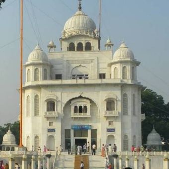 Le Gurdwara Rakab Ganj Sahib est un temple sikh à New Delhi construit en marbre blanc avec plusieurs dômes. Le bâtiment présente des éléments décorateurs sur ses murs extérieurs et ses entrées principales qui reflètent les traditions architecturales sikhs.