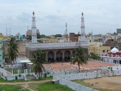 La Grande Mosquée de Triplicane est une maison de prière construite entièrement en granit dans le quartier de Triplicane, avec deux minarets et un dôme doré au centre. La structure contient de vastes salles de prière conçues pour accueillir les fidèles.