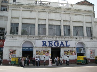 Le Regal Theatre est un cinema a Connaught Place construit en 1932 avec une architecture neoclassique et des lettres decoupees ornant la facade. Le batiment contenait a l'origine sept loges privees entre des piliers, des fauteuils au rez-de-chaussee et un petit balcon, ainsi qu'un restaurant au premier etage aux larges fenetres.