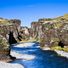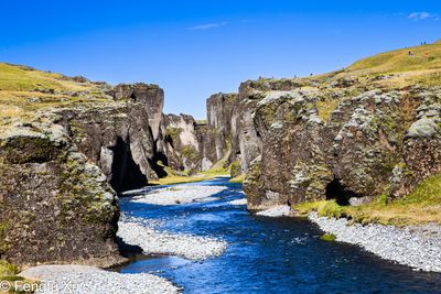 Les niveaux d'eau de la rivière Fjaðrá varient selon les saisons, créant différents motifs dans les courbes serpentines des parois du canyon.