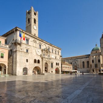 Ascoli Piceno est une commune des Marches en Italie, connue pour l'usage de la pierre de travertin gris dans toute sa vieille ville. Les bâtiments construits avec ce matériau local donnent aux rues et aux places une apparence uniforme.