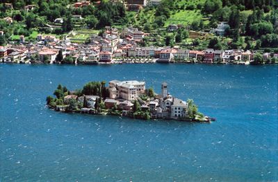 Orta San Giulio se trouve sur la rive orientale du lac d'Orta et suit la pente avec des ruelles sinueuses entre de hautes maisons de pierre. La place centrale s'ouvre directement sur l'eau et fait face à la petite île de San Giulio située juste au large.