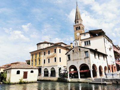 Portogruaro est une agglomération médiévale dans la ville métropolitaine de Venise, qui s'étend le long du fleuve Lemene et est reliée par plusieurs ponts de pierre. Les rues suivent un motif en damier avec des arcades en brique et des flèches gothiques qui s'élèvent au-dessus des toits.
