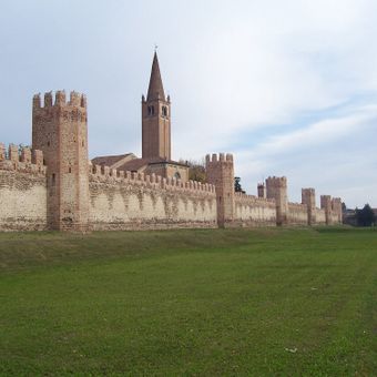 Les remparts de Montagnana s'étendent sur deux kilomètres et comportent 24 tours hexagonales avec des créneaux atteignant dix mètres de hauteur.