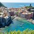 Vernazza est un village côtier dans la province de La Spezia, en Ligurie, en Italie. Le village s'étend depuis son port naturel en remontant la pente rocheuse, avec des ruelles étroites et de hautes maisons dans des tons roses, jaunes et orangés.