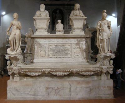 Le Sepolcro di Don Pedro de Toledo est un tombeau en marbre dans l'église napolitaine de San Giacomo degli Spagnoli, orné de quatre statues des Vertus Cardinales à ses angles. Le sarcophage présente des figures agenouillées du Vice-roi et de son épouse Maria, encadrées par des chapiteaux corinthiens ouvragés.