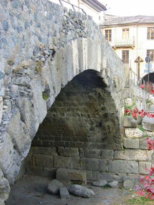 Le Pont de Pierre est un pont en pierre romain à Aoste s'étendant sur 17 mètres avec une largeur d'environ 6 mètres. Il présente une voûte en arc plat construite en pierre brute et mortier romain.