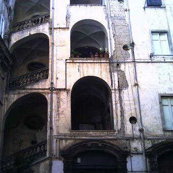 Situé entre la Piazza Gesu Nuovo et la Piazza San Domenico Maggiore, le palais permet d'accéder à de nombreux monuments historiques le long de la Via Spaccanapoli.