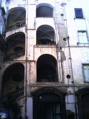 L'escalier intérieur, attribué à l'architecte Ferdinando Sanfelice, démontre l'intégration de formes complexes et d'innovations structurelles du baroque napolitain.