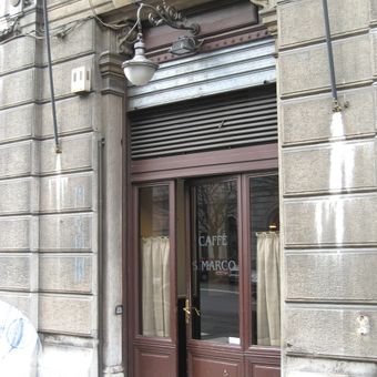 Le Caffè San Marco est un café Art Nouveau au centre de Trieste avec deux rangées de colonnes en laiton aux chapiteaux floraux s'étendant dans sa vaste salle. L'intérieur présente un mobilier en bois foncé et des peintures murales détaillées, avec une librairie intégrée complétant l'espace.