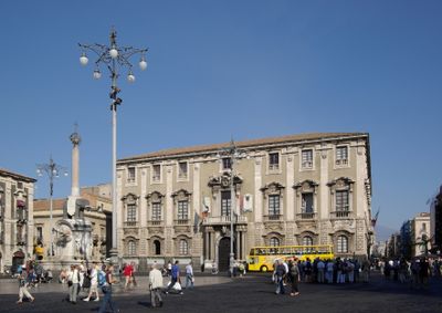 Le palais, qui sert d'hôtel de ville de Catane, se dresse dans la partie nord de la Piazza del Duomo, à 1,3 kilomètres de la gare Catania Centrale.