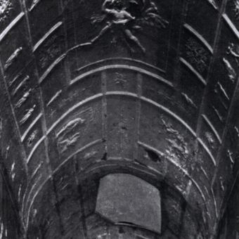 La basilique souterraine présente trois nefs soutenues par six piliers en pierre et contient des reliefs en stuc blanc représentant des figures mythologiques.