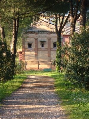 Le tombeau d'Annia Regilla est un ancien mausolée romain dans la Valle della Caffarella construit en briques avec des gravures décoratives détaillées, mélangeant les approches de design romain et grec. La structure conserve des portions de ses éléments architecturaux originaux et des détails ornementaux qui montrent le savoir-faire de l'époque.