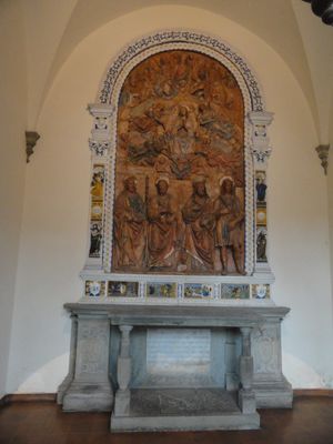 Le retable a été créé par Giovanni della Robbia en 1518 et provient à l'origine de l'Eglise de San Marco à Calcesana. Son déplacement à la Cappella Aulla reflète comment les œuvres d'art religieux se sont déplacées entre les églises de Pise au fil du temps.