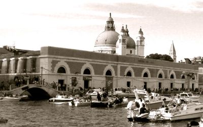 Les Magazzini del Sale s'étendent le long de Fondamenta delle Zattere avec neuf grands portails, surmontés de fenêtres en forme de croissant.