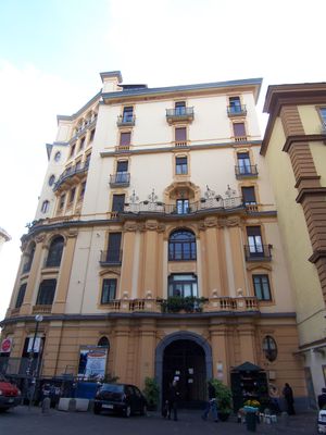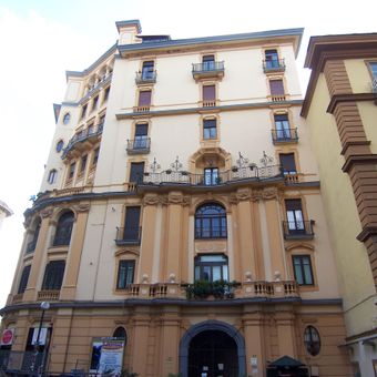 Le Palazzo Avena se dresse sur la Via Benedetto Croce 19, présentant une architecture néoclassique avec une entrée en arc surbaissé montrant les armoiries des Capone.