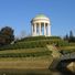 Le temple monoptère de style classique, construit en 1820 par Antonio Piovene, présente des colonnes ioniques soutenant un dôme près de l'étang central.